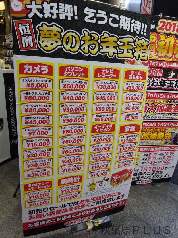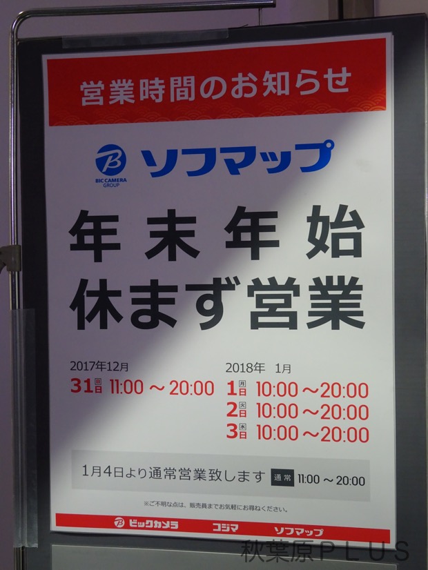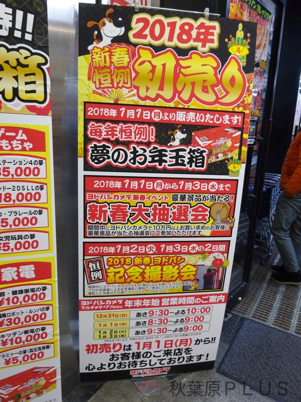秋葉原の2018年の初売りは元日からの店と4日や5日の店からと二極化が進んでいる模様。それではまずばビックカメラグループから見ていこう。