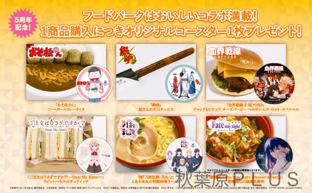 「おそ松さん」のニートボールカレーライス、続『刀剣乱舞-花丸-』のとある本丸の特製味噌ラーメンなど、作品コラボ6商品を販売。1商品購入につき1枚オリジナルコースターをプレゼント!