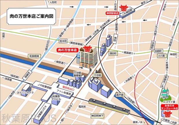秋葉原の一角にそびえる『肉の万世』というビルがあります。かつては『鹿野無線』という電機部品商でしたが、戦後不況の折に精肉・コロッケ惣菜の『万世』(屋号は万世橋に由来)に業種転換して成功。現在では関東を中心に洋食、焼肉、ラーメンの店をチェーン展開するという、秋葉原が誇るお肉のお店であります。