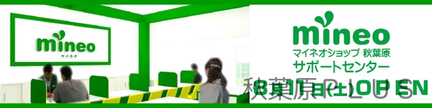 携帯電話サービス「mineo(マイネオ)」が秋葉原にサポートセンターをオープンした。2018年8月11日(土)よりmineoショップ秋葉原が入る店舗の3階に、mineoサービスの店頭サポート(機種変更・プラン変更・SIM再発行)の即日対応が可能な「mineoショップ 秋葉原」サポートセンターがオープンした。「mineoショップ 秋葉原」サポートセンターでは、今までmineoショップ 秋葉原において店頭で対応が出来なかった 機種変更(端末の買換え)、既存プラン及びタイプの変更、SIMカードの変更及び、再発行について、即日※1での対応が可能となるとの事。午前中に秋葉原で対応してもらえばその日に持って帰ってすぐに使えるのは嬉しい。また、店頭での対応してもらえるので、わからない事、不安なことを確認できるのもメリットだ。