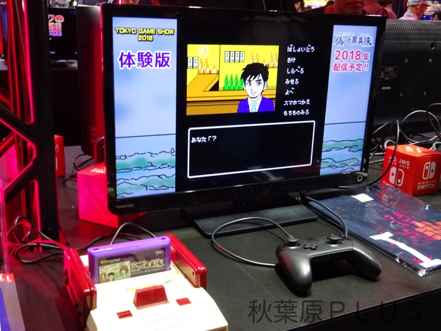 まず一つ目はFlyhigh Worksのブースにあった「偽りの黒真珠」だ。こちらはSwitchのDLCでの提供となっているが、FCっぽい画面構成と内容でオホーツクに消ゆを思い出させるテイストだ。ちょっと気になってしまったのでまずは紹介。Switchを持っている人は購入して楽しんで見てほしい。