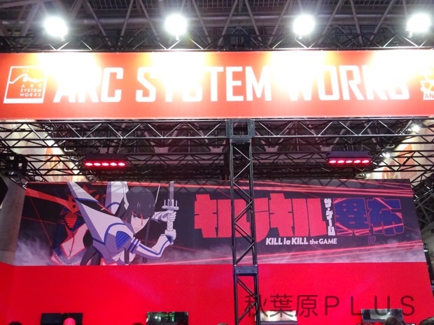 続いてはアークシステムワークスの「キルラキル」だ。こちらは同名のアニメを元にした格闘ゲームだが、その画面の2D的な感じと実際のプレイ時の3D的な演出がなかなか心地よいゲームに仕上がっている。面白システムもいくつか搭載しているようなので実際に市場に出たら触ってほしい。