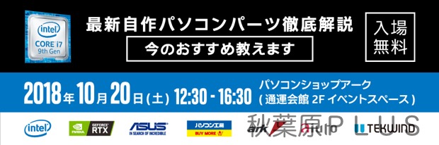 新CPU&新VGA最新自作パソコンパーツ徹底解説セッションが東京秋葉原で2018年10月20日の土曜日開催されることが決定。詳細をチェックして行こう。