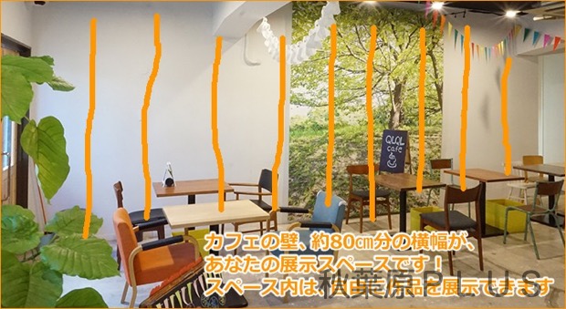 • 出品作品サイズ/規定なし(QLQLcafeの大きな壁の幅80cm分が、お一人様の出品スペースです。)なお、ご自身で額装をつけての出品も対応できますので、事前にご相談ください。