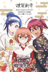2019年4月TV アニメ放送が予定されている「ぼくたちは勉強ができない」。その放送を記念して文乃、理珠、うるかの新春晴れ着・描きおろしイラストを公開! さらに以下に掲載の店舗でも描き下ろしイラストポスターが展示されるぞ。もちろん、ポストカード配布も行うので新春から近くに対象店舗へいこう!