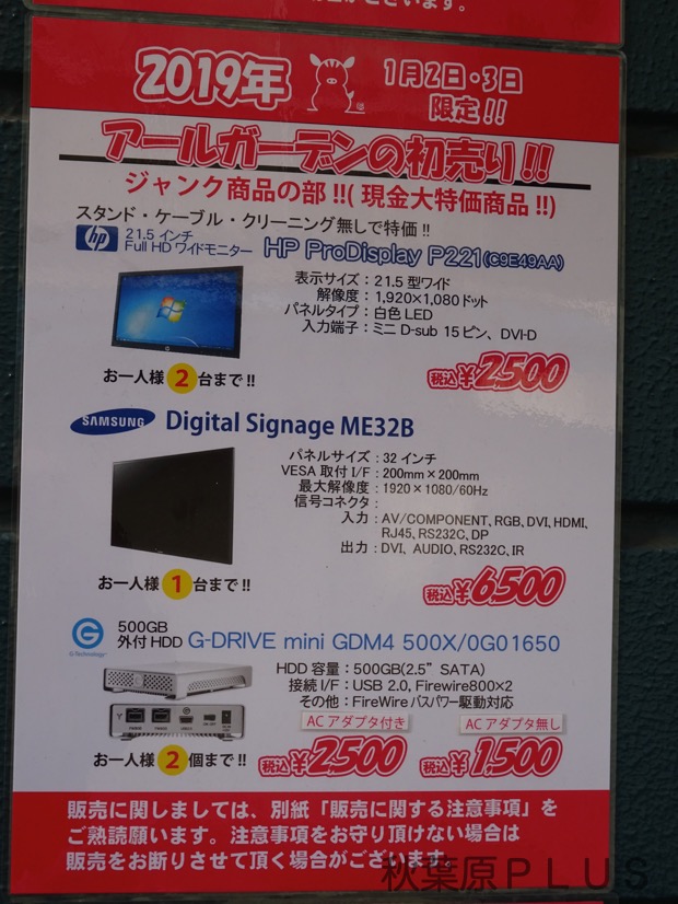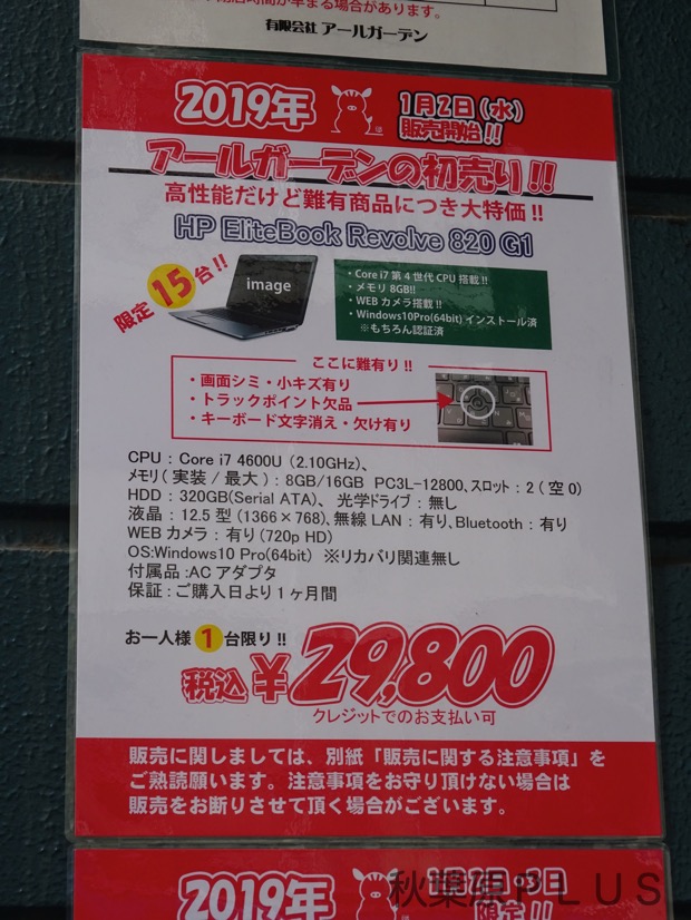 秋葉原の一番端のパソコンショップといっても過言ではないアールガーデンは2019年1月2日からの初売り。