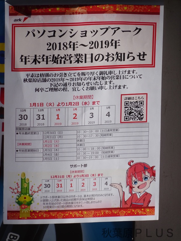 パソコンショップアークは2019年1月3日の初売り予定。