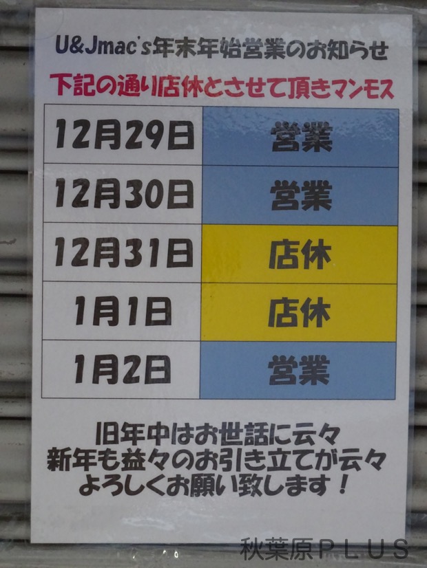 U&J Mac’sは両店舗ともに2019年1月2日から初売り。