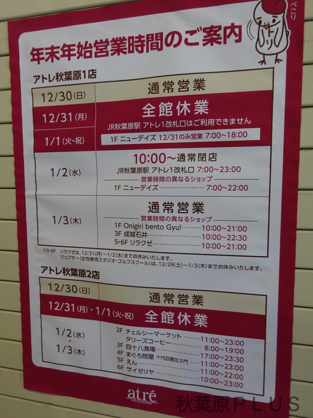 最後にアトレは2019年は1月2日から初売り。そして、初売りの一部店舗やイベントで注意事項が掲載されているので確認しておこう!