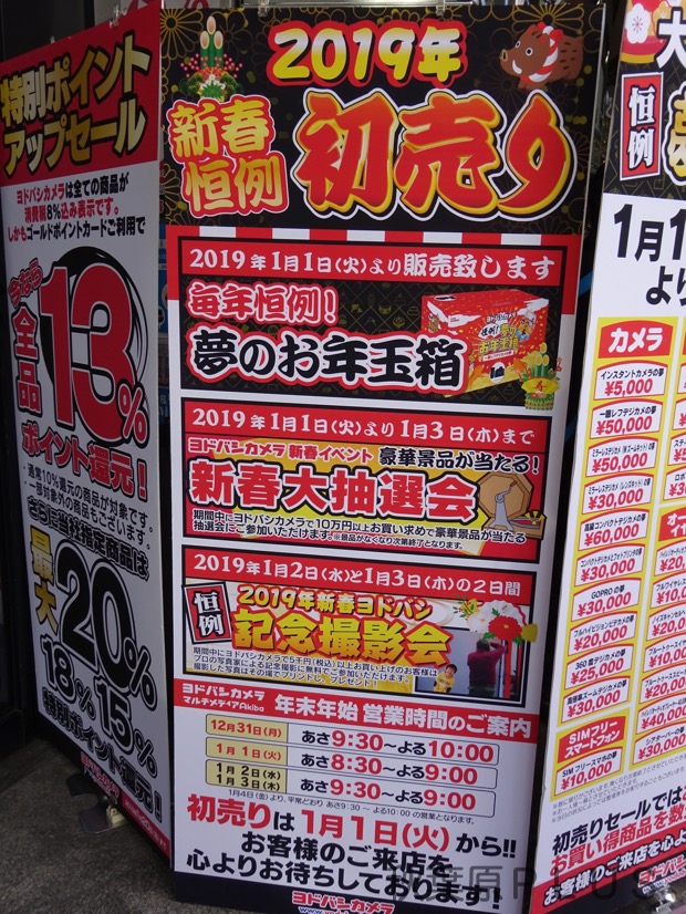 最初はビックカメラAKIBA。初売りは2019年1月1日から。