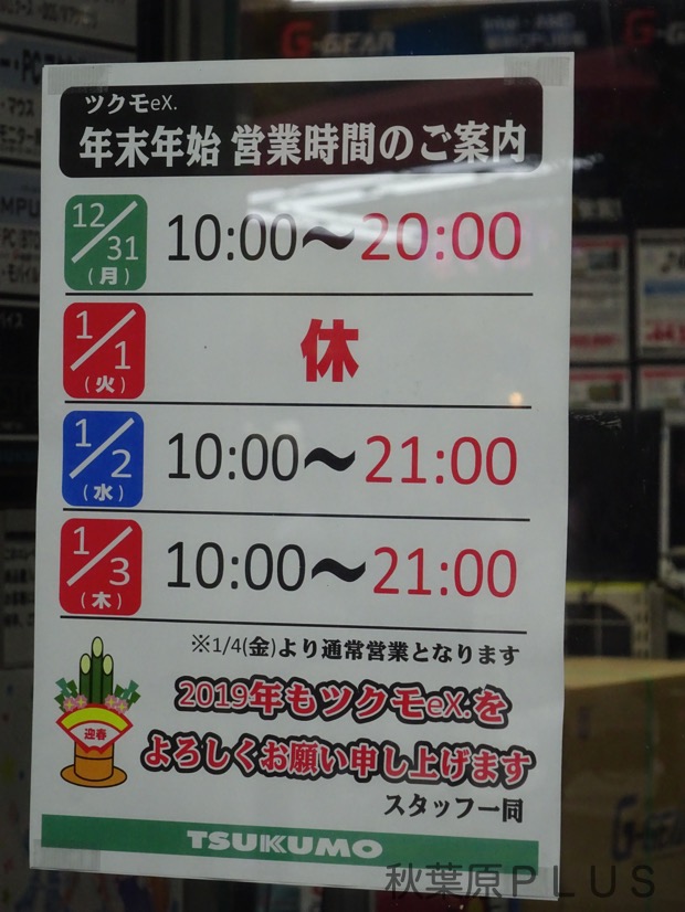 パソコン工房関連は秋葉原地域は2019年は1月1日から初売り開始予定。