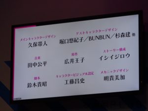 石川さんからは、まだ公開済みのPVしか見たことが無い様子で「最新のPVを観れるのではないかと期待してきました」とのコメントが飛び出した。最初は石川さんの演じる竜胆カオルの紹介PVが流れ、まさかのスミレさん大好きの一面が思いっきり紹介されたPVが公開された。風組所属、メガネを触った時に光るシーンも見どころの一つ、とはプロデューサーの片野さん。石川さんからもカオルのスミレ様愛を強く感じてしまったとの感想も出ていた。