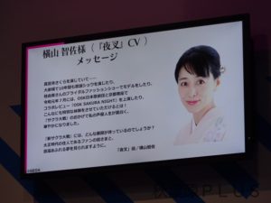 夜叉が登場し、映像の声から横山智佐さんと丸わかり、ということで本人よりサプライズメッセージが届いた。その中でサクラ大戦によって声優人生が大きく変わったことを告白。新作のサクラ大戦がどのような展開となるのか楽しみにしているということだ。謎に包まれた新キャラ夜叉、かなりの重要キャラとなりそうだ。