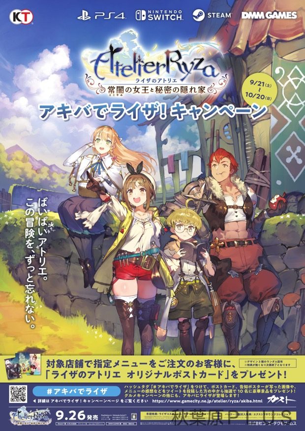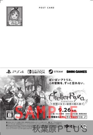2019年9月26日(木)に「アトリエ」シリーズ最新作の『ライザのアトリエ 〜常闇の女王と秘 密の隠れ家〜』が発売されたが、本作の発売と合わせて東京・秋葉原を舞台とする「アキバで ライザ!キャンペーン」が2019年9月21日(土)〜10月20日(日)の期間限定で開催が決定。もうポストカードは手に入れた?