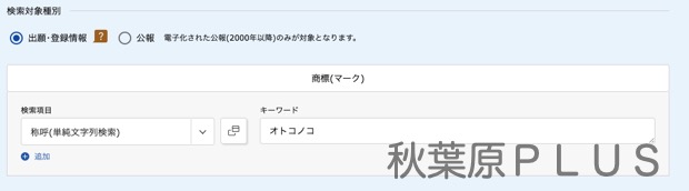 商標は登録までに様々な審査が行われる。今回の「男の娘」に関しても結構色々とあったようだ。その詳細に関しては「J-PlatPat(https://www.j-platpat.inpit.go.jp/)」という検索サイトで確認することができる。今回の場合は商標を選択し「呼称(単純文字列検索)」を選択し、キーワードに「オトコノコ」と入力しよう。