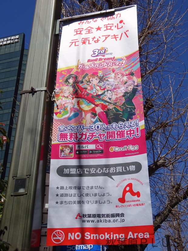 そして中央通りのフラッグはガルパの模様。全て違うキャラっぽいが全部は撮影できなかった。