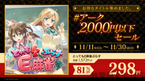 アークシステムワークスが『#アーク2000円以下セール』を開催中だ。期間は2020年11月11日(水)~ 11月30日(月)となっている。ちょっと気になってたアノソフトを購入しちゃおう!