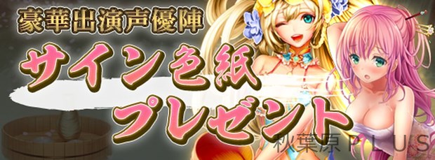 温泉イベント「束の間の湯けむり温泉」の開催を記念して、愛姫(温泉)役の本泉莉奈さん、上泉秀胤(温泉)役の矢野亜沙美さんのサイン色紙を抽選で2名様(各1名様)へプレゼント!
