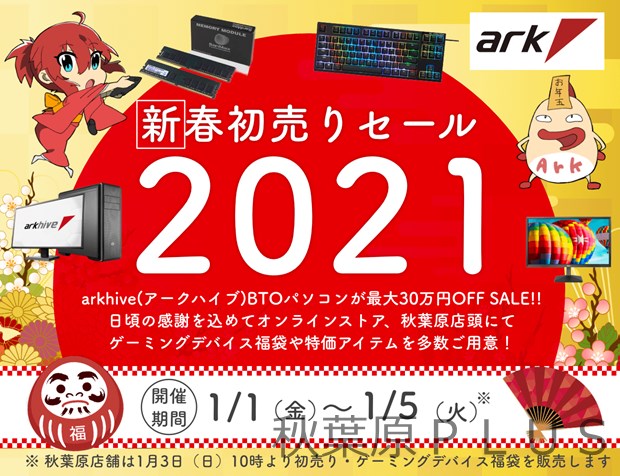 アーク オンラインストア、秋葉原店舗にて2021年新年初売りセールを開催! arkhive(アークハイブ)BTO-PCが最大30万円引き! オンラインストアと秋葉原店舗で異なるアイテムをご用意、という事で内容をチェックしていこう!