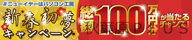 数量限定『初売り限定 初夢福袋』、『お年玉特価パソコン』他総額100万円分が当たる『新春初夢キャンペーン』も実施!