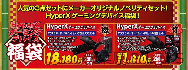 4.HyperXゲーミングデバイス ミドルクラスセット福袋18,180円(税別)<全店合計:250個>