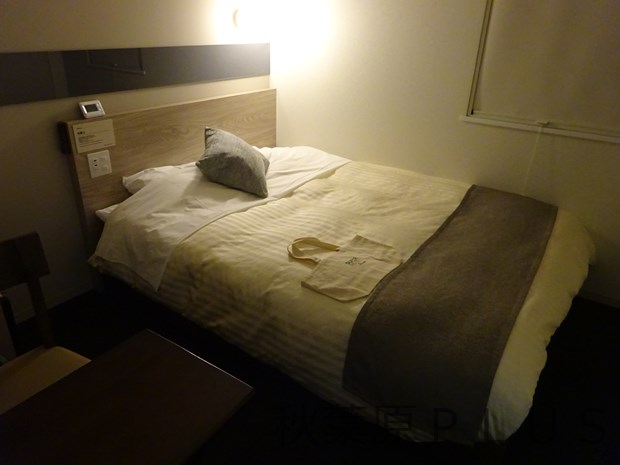 ベッドの上には袋が1枚。これは大浴場に行く際に部屋からタオルや着替えなどを持ち込む際に使用するバッグだ。スーパーホテルpremier秋葉原では大浴場へは部屋着&スリッパで移動利用が可能。しかも夜中も入れるので好きな時間に入りに行こう。部屋にも浴槽があるのでそちらを使うのもOK。浴槽は後程紹介していこう。