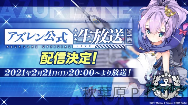 スマートフォン向けアプリ『アズールレーン』の公式生放送を2021年2月21日(日)20時より配信が決定した。