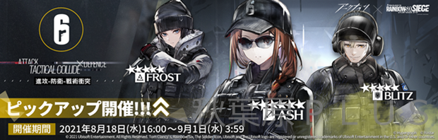 精鋭小隊スカウト「進攻-防衛-戦術衝突」にコラボオペレーターの「★6 Ash」、「★5 Blitz」、「★5 Frost」がスカウト可能だ。「★6 Ash」、「★5 Blitz」、「★5 Frost」は、本スカウト終了後、新しく開催されるスカウトには追加されない。また、開催期間中、精鋭小隊スカウト以外のスカウトに「★6 Ash」、「★5 Blitz」、「★5 Frost」は追加され無い為、注意しよう。