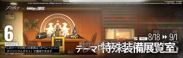 購買部のインテリアショップにて、『レインボーシックス シージ』コラボの新テーマ「特殊装備展覧室」が入荷!