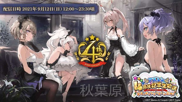 スマートフォン向けアプリ『アズールレーン』が4周年を迎える! 4周年を記念する特設サイトを更新。さらに本日(2021年9月12日)には12:00から23:30までの長時間生放送も実施。今日は壱日アズールレーンで楽しもう!