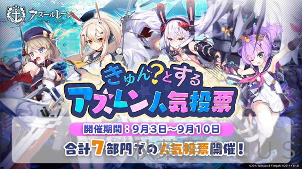 アズールレーンの人気投票を開催予定です。今回の人気投票では様々なテーマでの合計7つの部門を用意して、それぞれの部門での人気投票を2021年9月3日から9月10日まで実施。そして、気になる投票結果は本日2021年9月12日(日)の4周年記念生放送内「アズレン人気投票 開票速報」のプログラムにて発表される。どのような結果になったのか乞うご期待!