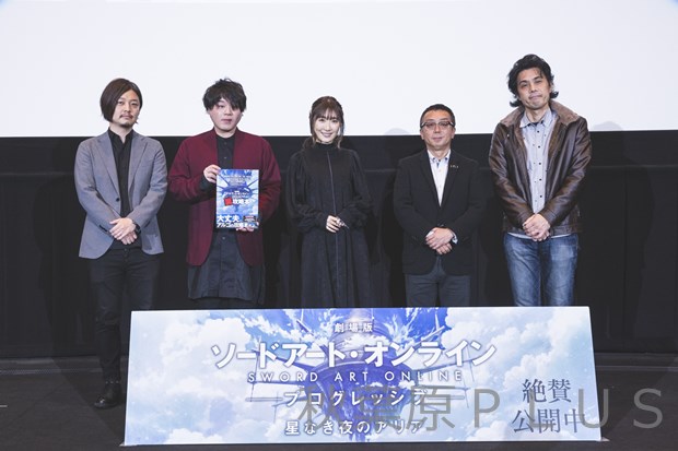 新宿バルト9にて行われた「劇場版 ソードアート・オンライン -プログレッシブ- 星なき夜のアリア」“裏”舞台挨拶に、キリト役の松岡禎丞、シリカ役の日高里菜、大澤信博チーフプロデューサー、原作担当編集の三木一馬チーフプロデューサー、丹羽将己プロデューサーが登壇し、作品に関する裏話を展開した。
