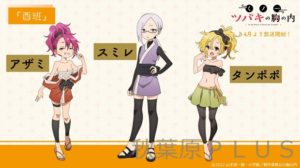 月刊コミック誌『ゲッサン』(小学館)にて連載中の「くノ一ツバキの胸の内」(著・山本崇一朗)。2022年4月より放送開始となるTVアニメ「くノ一ツバキの胸の内」のオープニングテーマがthe peggies(ザ・ペギーズ)による「ハイライト・ハイライト」に決定。さらに、先日公開となった『戌班』の3名に続き、本作に登場する全キャラクターの設定絵とキャラクター情報を初公開した。