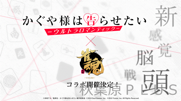 TVアニメ『かぐや様は告らせたい-ウルトラロマンティック-』とコラボが決定。コラボの詳細については、今後、『雀魂』公式Twitter(@MahjongSoul_JP)などで公開予定。一体どんなコラボになるのか、続報を待とう!
