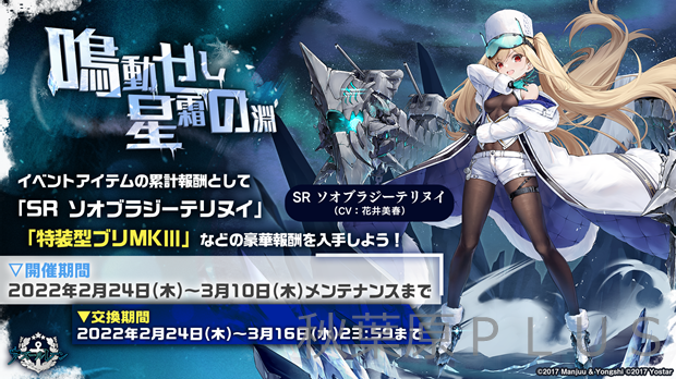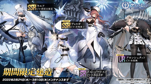 スマートフォン向けアプリ『アズールレーン』において、2022年2月24日(木)のメンテナンス後より、期間限定海域イベント「鳴動せし星霜の淵」の開催と、新規UR艦船「クロンシュタット」他、新規艦船が実装された。