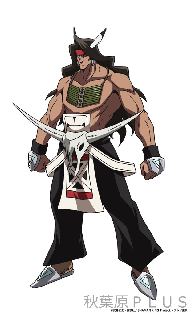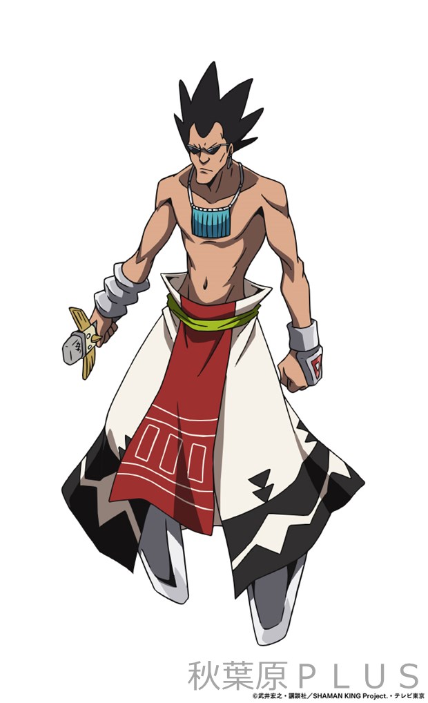 長い黒髪をしたパッチ族の青年。シャーマン・ファイトを運営するパッチ族の中でも、特に強い力を持つ「十祭司」の一人である。身につけたアクセサリーを媒介として、5体の動物型の精霊を使役し、変幻自在に戦う。